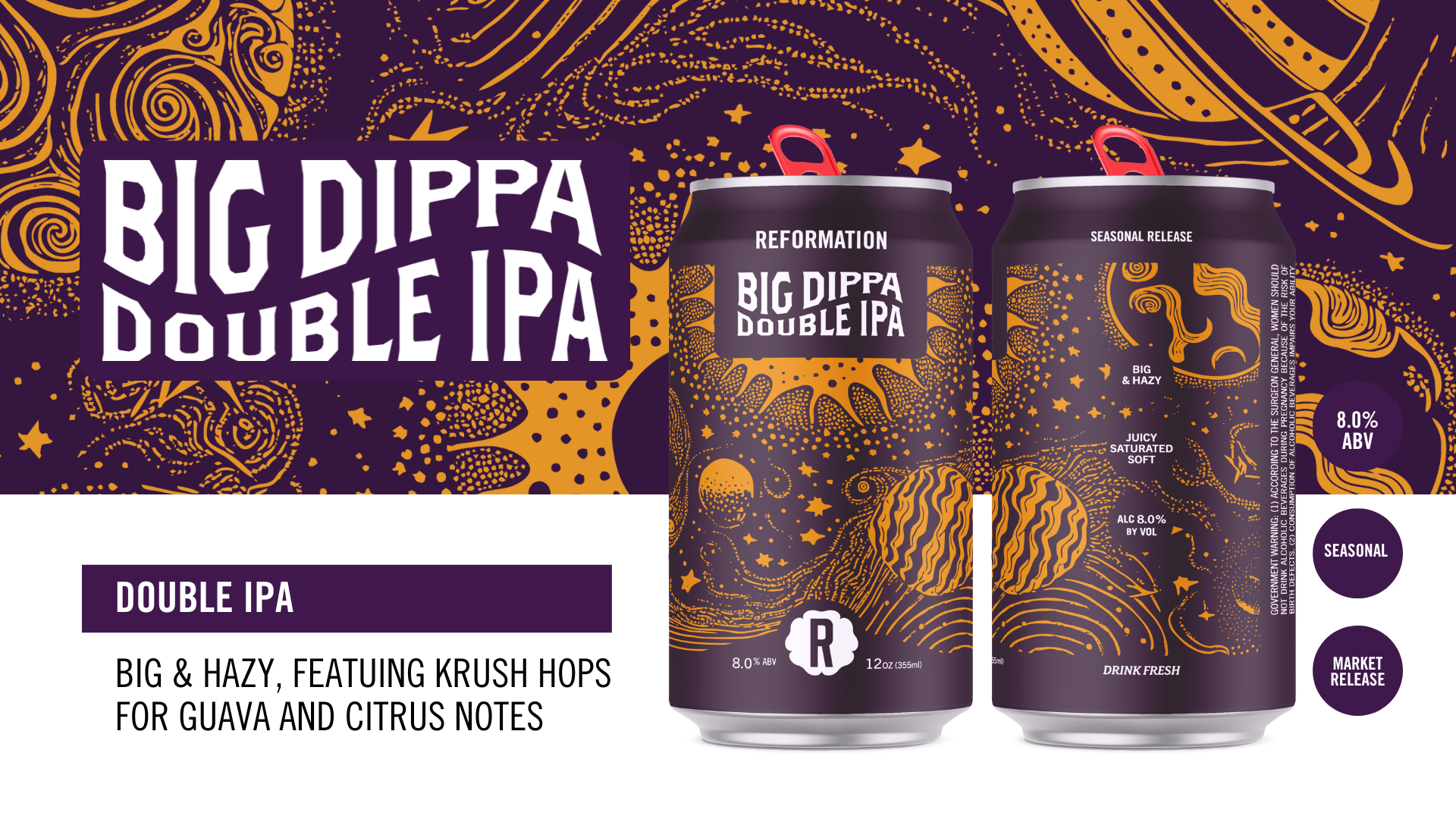Big Dippa returns. Not a roll back. A rocket to the moon. Same big, hazy, heavenly body - but with Mosaic, Citra, Krush, & Vic Secret Spectrum plans. Prepare to navigate the new world with this seasonal favorite as your co-pilot. Brewery first taste 2/11. Market launch 2/20.
